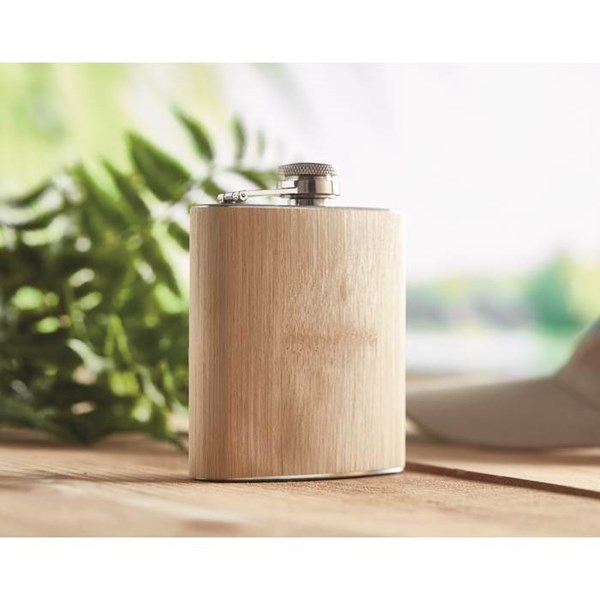 Úzká ploskačka. Bambusová povrchová úprava. Objem: 175 ml.